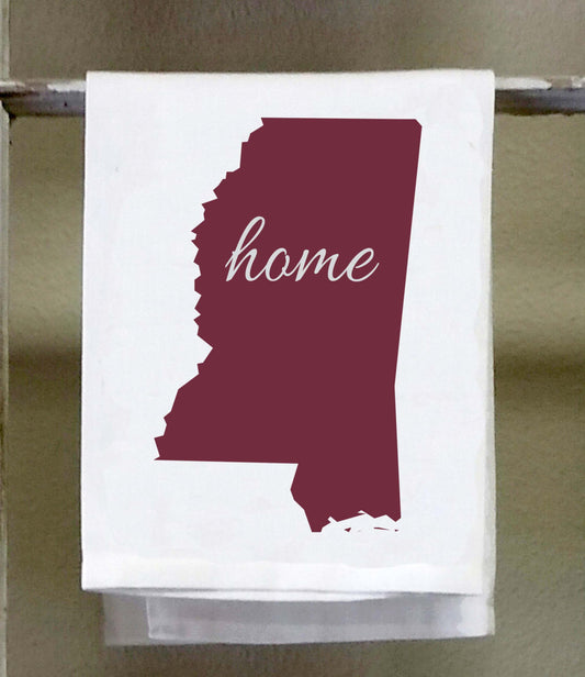Home Mississippi State Kitchen Towel, Dish Towel, white decorative , choose color from color chart, maroon comes with grey lettering