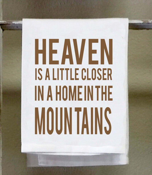 Kitchen Towel, Dish Towel, "Heaven is little closer in a home in the mountains", funny kitchen towels, mountain home decor, cabin decor