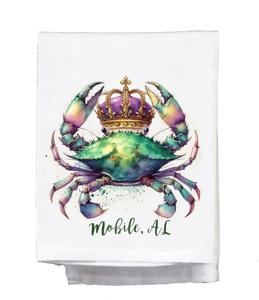Mardi Gras Dish Towel, Mardi Gras crab with crowns